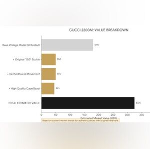 • Movement: High-end Swiss Made 1-Jewel Quartz Caliber 561.101. Internal movement is stamped "GUCCI" for guaranteed authenticity.