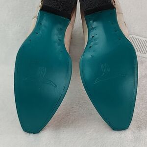 This Lane Lexington Bootie is a stylish and versatile addition to your wardrobe. The pointed toe and pull-on closure make it easy to wear, while the medium calf width ensures a comfortable fit. The ankle boot is made of genuine leather and features an embroidered accent, adding a touch of elegance to your outfit. Perfect for any occasion, this bootie can be worn for travel, weddings, parties, work, or casual wear. The low block heel is suitable for all-day wear, while the leather lining and insole provide added comfort. This bootie is part of the Lane Lexington Bootie product line, known for its quality and durability. Add a touch of Western style to your wardrobe with this beautiful beige bootie.