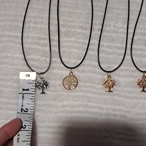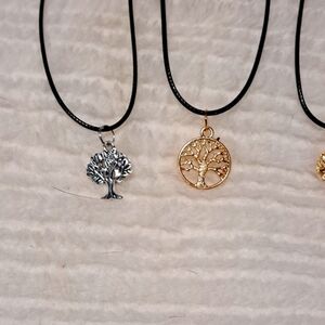 Discover the beauty of nature with this elegant necklace set featuring gold and silver tree pendants. Perfect for adding a touch of sophistication to any outfit.