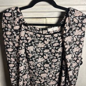 Mango MNG Black Pink Floral Puff Sleeve Square Neck Rocio Mini Dress