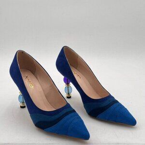 XYD Women Wave Pattern Pointed Toe Slip On Party Pumps Jewelry High Heel Colorful Rainbow Slip On Chic Dress Shoes