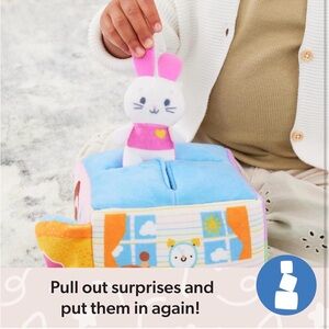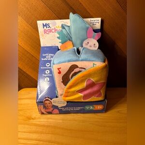 This brand new, never opened Ms. Rachel Surprise Learning Box is a soft, interactive plush toy designed to support early learning through play. Created with guidance from child development experts, this sensory toy encourages communication, cognitive development, and fine motor skills using textures, peek-a-boo flaps, and tuck-in plush surprises.