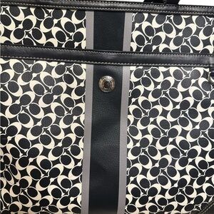 Coach Chelsea Heritage Stripe tote bag with the style number F15134. It is a large, multi-function handbag that was also widely marketed as a diaper bag due to its spaciousness and numerous pockets.