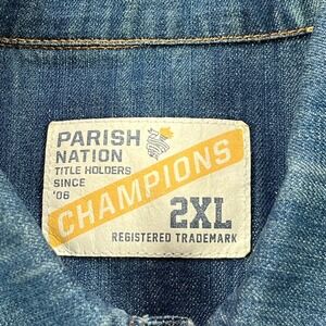 Y2K Denim Jacket Men 2XL Parish Nation Blue Faded Vintage Streetwear