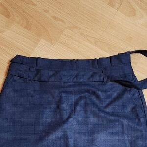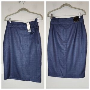 NWT Banana Republic Blue Plaid Pencil Midi Suit Skirt Removable Belt Pocket Sz 0