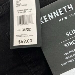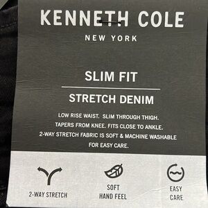 Kenneth Cole men slim fit, stretch Black Denim jeans. Size 34”* 36”. Well tailored, great quality! Front and back pockets with 2 smaller pockets at the front right side which can be used for coins and credit cards. Great collection for your closet, can be worn for any occasion. NWT