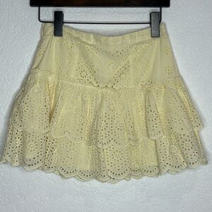 New LoveShackFancy Amy Skirt Yellow Eyelet Small revolve
