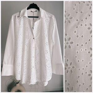 ZARA OPENWORK EMBROIDERY SHIRT WHITE MEDIUM NWT