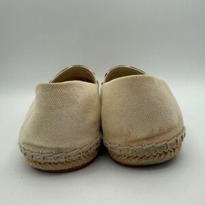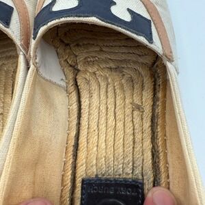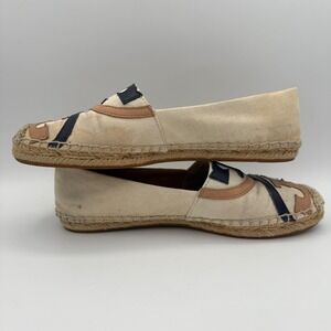 Tory Burch Espadrille Flats Canvas Beige Navy Tan Logo Size 7M
