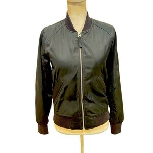 Abercrombie & Fitch black zip up bomber jacket cream teddy lining zip pocket xs