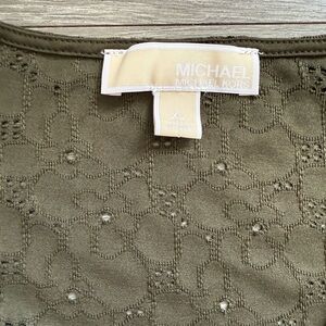 Michael Kors Olive Eyelet V-Neck Blouse