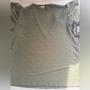 Chic olive eyelet blouse with V-neck. Nearly new condition with no flaws