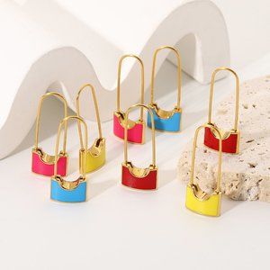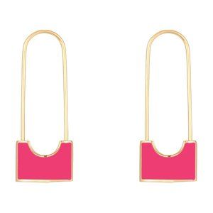 Pink Safety Pin Lock Dangle Earrings 18k Gold Stainless Steel