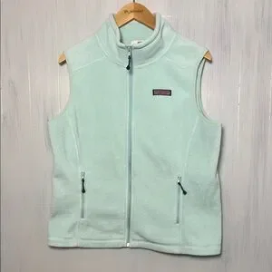 Vineyard Vines Fleece Vest Womens Medium Light Sea Green Full Zip