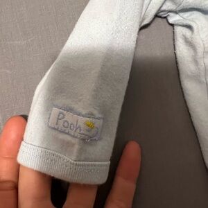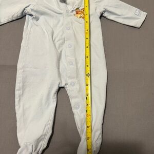 Charming Disney footed one piece in light blue. Features playful character detail. Cozy and stylish for little ones.