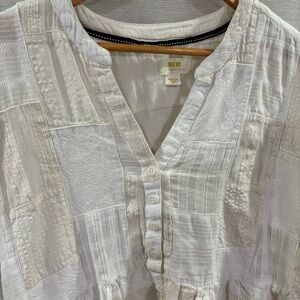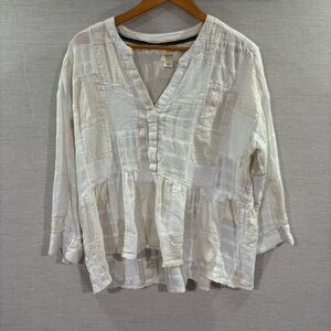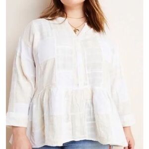 Maeve by Anthropologie Zoe Swing Peplum Patchwork Top Cream White Size Medium