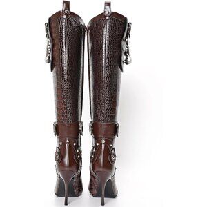 Crafted in faux leather with a croc-embossed finish, these crocodile boots for women offer the polished feel of leather knee high boots for women with a subtle, luxurious shine that suits both daytime and evening outfits.