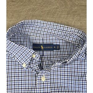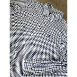Ralph Lauren Shirt Mens XL Blue White Button Down Check Navy Pony Cotton Casual