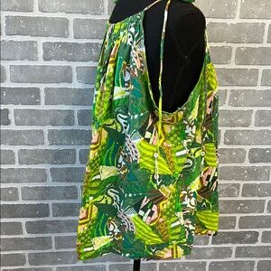Haute Hippie Top Womens XL Safari 100% Cotton Green Seashell Beaded Bohemian