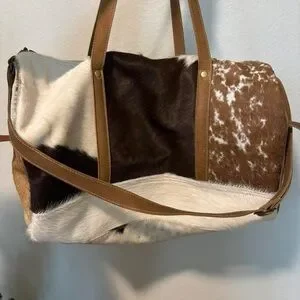 Brown and White Cowhide duffle Bag