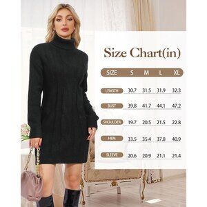 This turtleneck knitted thick sweater dress is made of yarn soft knitted fabric. sweater dress has an elegant shape, The material has some stretchy but holds its shape well throughout the day without getting baggy. soft skin-friendly texture and strong warmth, That envelops you in comfort, making it an ideal choice for chilly weather.