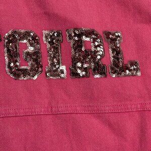 Fantastic Fawn Med Pink Denim Cowgirl Sequin Button Down Raw Hem Barbie Jacket