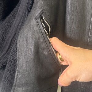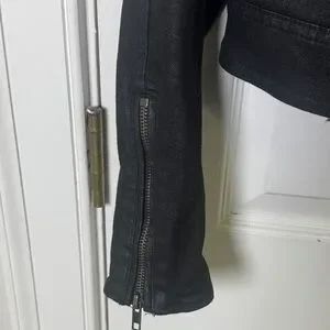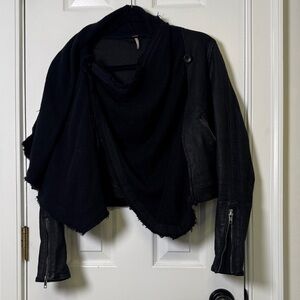 Free People coated denim jacket, Free People moto jacket, Free People black jacket, Free People drape front jacket, coated denim moto jacket