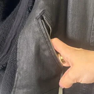 • Features: zip cuffs, front zip pockets, asymmetrical hem, waterfall collar