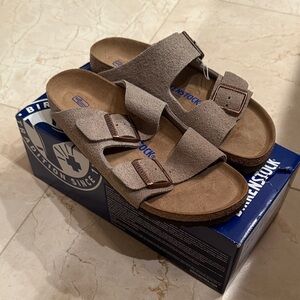Birkenstock Arizona Sandels. Suede leather. Color taupe