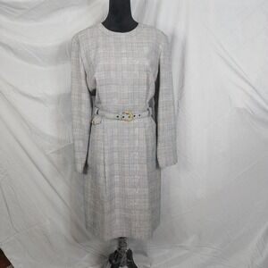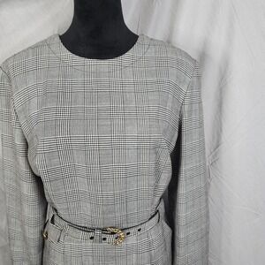 CLUES COLLECTIONS Size 12 USA Vintage Belted Glen Check Plaid Midi Sheath Dress