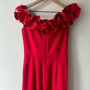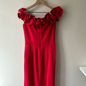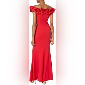 Xscape Long Crepe Over-the-Shoulder Ruffle Gown Sz 8