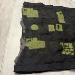 Kali Basi Artisan Handmade USA Silk Scarf Black Green Abstract Felted Deisgn