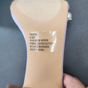 Chic lavender heels adorned with elegant pearls. Ideal for special events.