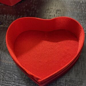 Set of three red heart-shaped boxes. Perfect for gifts or decor. Store jewelry, love letters, hankies etc. Please see pictures for condition. Largest has tassel detached but will be included. Approximately 8.25, 6.5” & 5.25” across. Stacked, they’re 8 5/8”h. Tips are quilted and they have gold tone beads on them. Very pretty with a different visual texture to use in displays as well! I love that they nest when not in use for compact storage! Add these to another listing/s for a custom bundle discount offer. Considerate offers welcomed on listings over $15.