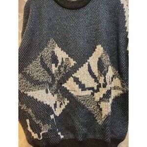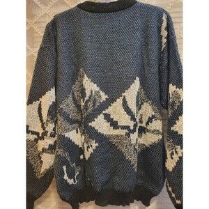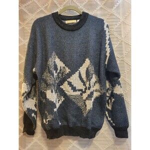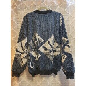 Vintage Mens Sweater Large Geometric Acrylic Cosby Preppy Old Money Aspen Lodge