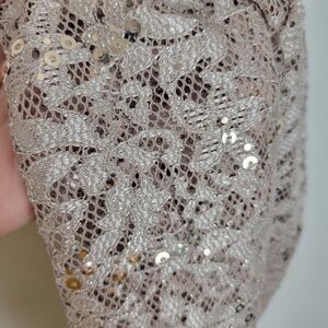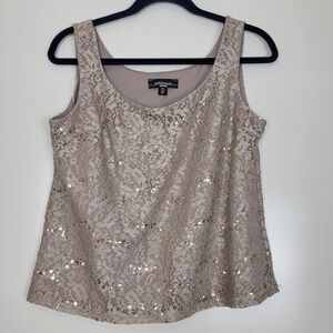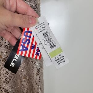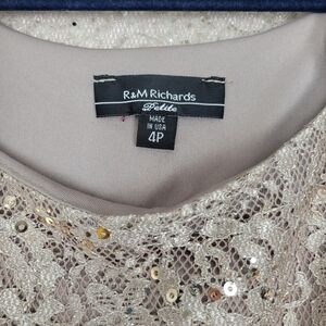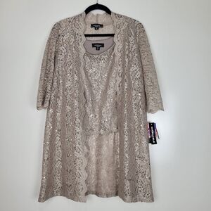 NWT R&M Richards Metallic Lace Tank Top with Sheer Lace Jacket in Champagne 4P