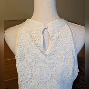 White Boho Lace Loose Fit Tank Top Halter Top Neck XXL