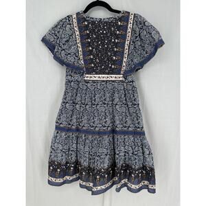 Sea New York Dress Womens XS Navy Blue Mini Tiered Paisley Floral Ruffle Ivette