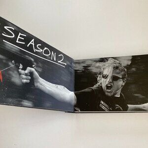 Sons Of Anarchy The Collector's Set Complete English 30 DVDs. All 7 Seasons included, all are in excellent preloved condition, note a very small surface paper tear on upper left corner of book binder as pictured. Not blu ray, no original box included. From a smoke free/pet free home.