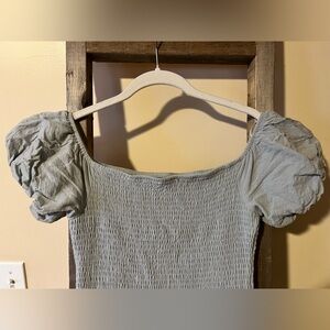 Chic off-shoulder design. Light blue/green hue. Perfect for versatile styling.