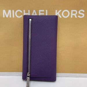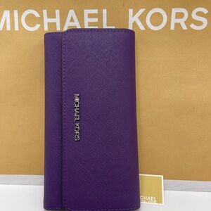 Michael Kors Lg Jet Set Travel Trifold Leather Wallet Dark Purple NWT