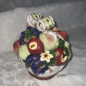 Mint Condition Vintage 1990’s Ceramic Large Cookie Jar, Stuck in Time, Stuckintime, Apples, Pears, Grapes, Tied with a Bow