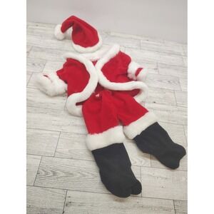 • 3-piece set: red jacket w/ plush faux-fur trim, pants w/ attached black "boots," and matching Santa hat