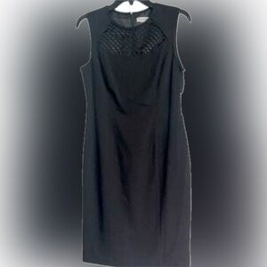 Calvin Klein Women's Black Sheath Sleeveless Career Work Dress Petite Size 10. Classy, sexy dress. The dress has a soft round neck with mesh inset detail. The zipper is concealed on the back with hook and eye closure.