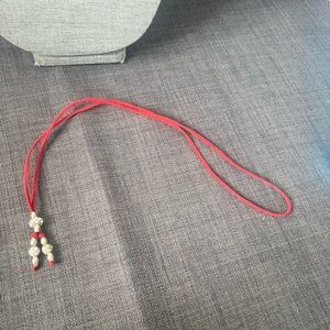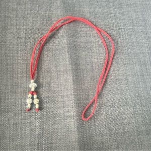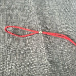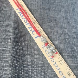 Sparkly necklace with silver and cz type stones on red leather cord adju…
