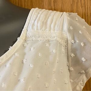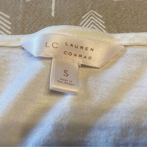 This is a dainty, cute , lacy LC Lauren Conrad short sleeved white shirt, size S. In great used condition. See photos for measurements.
