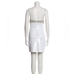 Introducing the PatBo Hand Beaded Sequin Mini Dress in White. Due to the intricately hand-beaded and hand-sewn embellishments, this Hand-Beaded Sequin Mini Dress takes fifteen days to make. This dress is made from a sequin fabric and hand-beaded with silver jewel stones. It features a concealed back zipper closure and is fully lined. Runs true to size. Model wears a size 4.