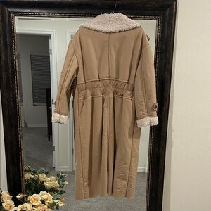 Stay stylish and warm with this elegant tan teddy coat. The plush lining adds extra comfort for chilly days.