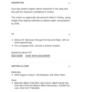 Everlane New Stretch Skinny Jeans Dark Indigo NWT Size 30 x 32