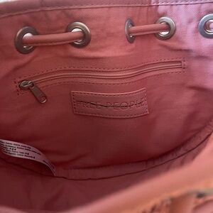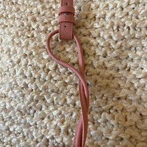 This adjustable strap crossbody features unique vintage aesthetics with soft vegan leather details and a drawstring closure. So cute in vintage pink color!